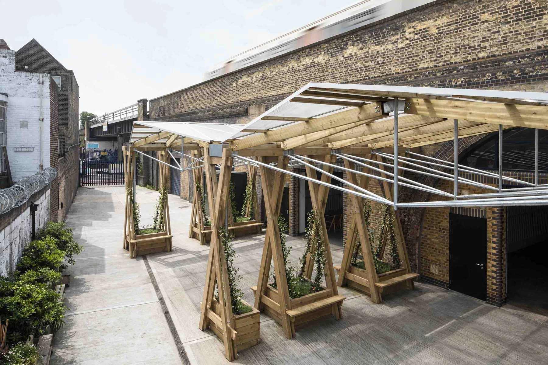 Our pavilion for Maverick Projects used expressive geometry and basic materials to create a unique arts and events venue. Collaborating with architect and contractor we devised a structural form which mirrored the adjacent railway arches whilst remaining economic and honest.