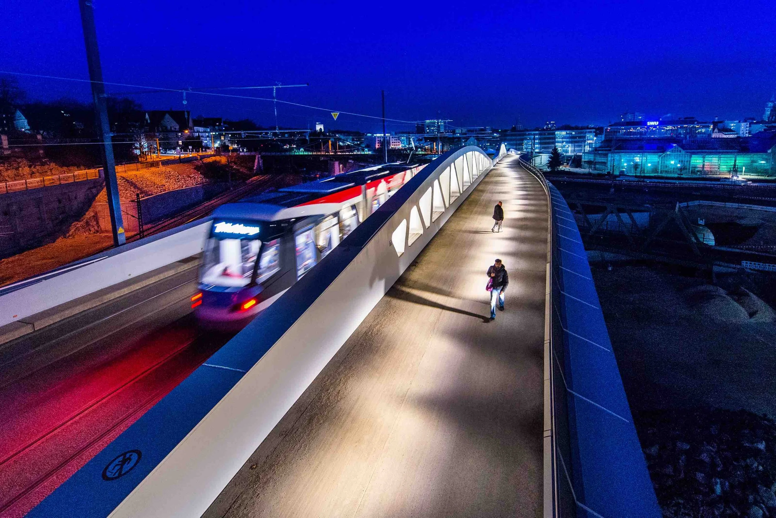 The 270m-long crossing is the keystone in Ulm’s new network providing a north-south connection linking the city centre with the science park.
